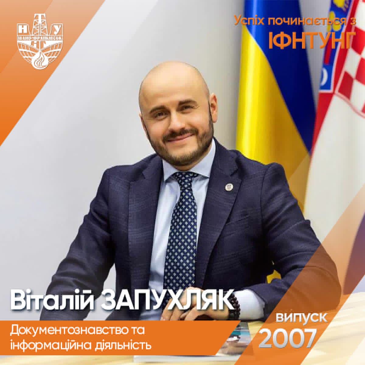 У 2007 році Віталій ЗАПУХЛЯК завершував навчання на факультеті управління та інформаційної діяльності Івано-Франківського національного технічного університету нафти і газу. Але відтоді багато змінилося. Рідний факультет динамічно розвивався й нині відомий як Інститут гуманітарної підготовки та державного управління (ІГПДУ).