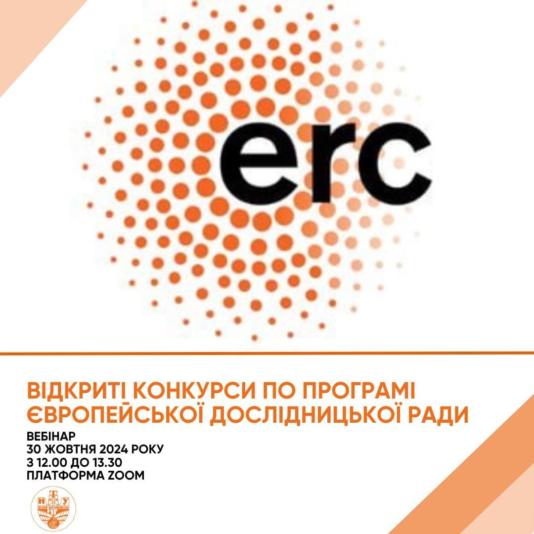 Запрошуємо до участі у вебінарі «ВІДКРИТІ КОНКУРСИ ПО ПРОГРАМІ ЄВРОПЕЙСЬКОЇ ДОСЛІДНИЦЬКОЇ РАДИ»