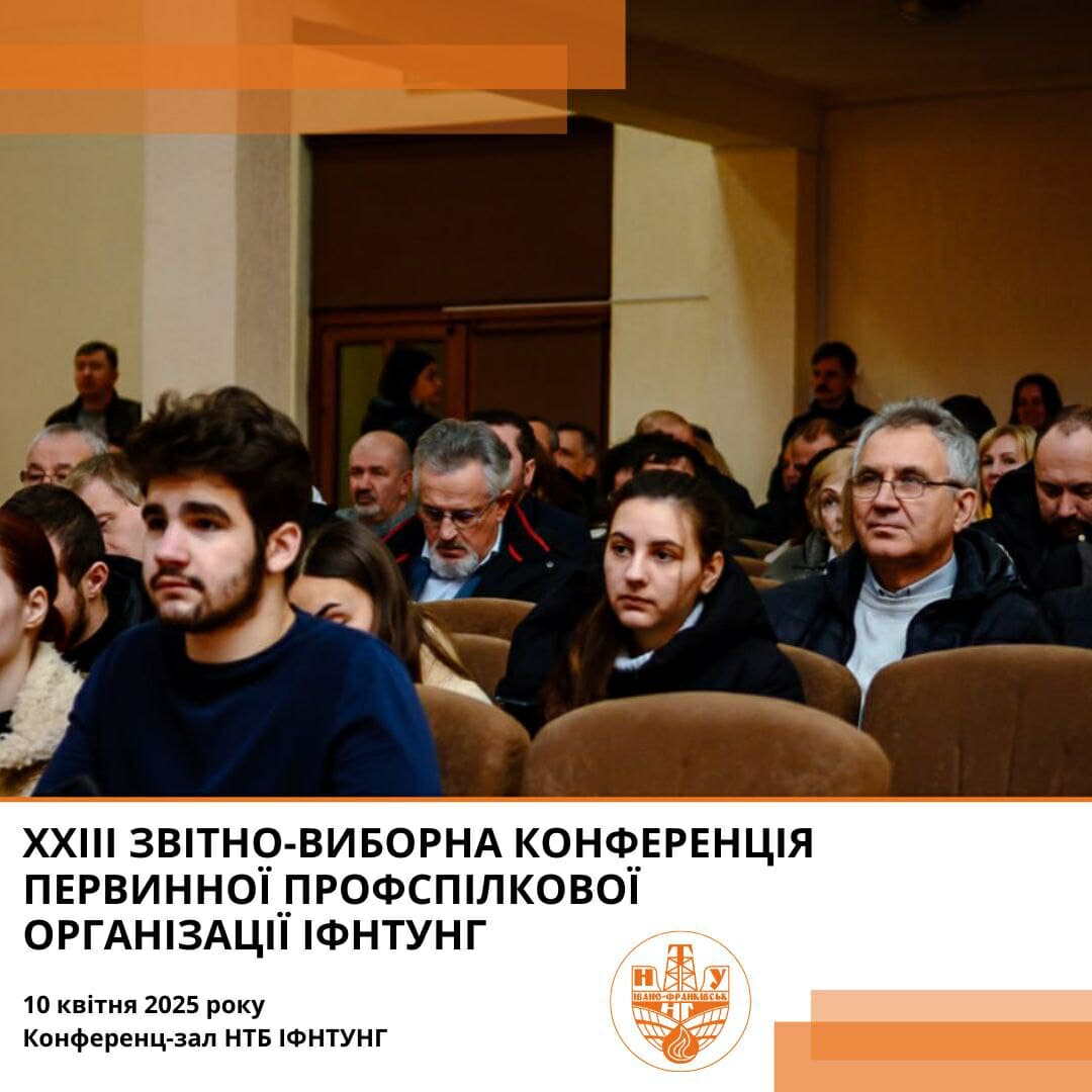 10 квітня 2025 року о 14.30 у конференц-залі бібліотеки відбудеться XXIII звітно-виборна конференція Первинної профспілкової організації Івано-Франківського національного технічного університету нафти і газу.