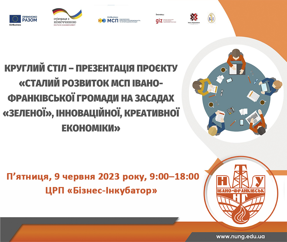 Проєкт «Сталий розвиток МСП Івано-Франківської громади на засадах «зеленої», інноваційної, креативної економіки» спрямований на створення засад для сталого розвитку МСП за рахунок підвищення підприємницької культури та рівня знань, стимулювання та підтримки розвитку інноваційного потенціалу громади з врахуванням принципів зеленої економіки шляхом об’єднання зусиль представників секторів бізнесу, науки, влади.