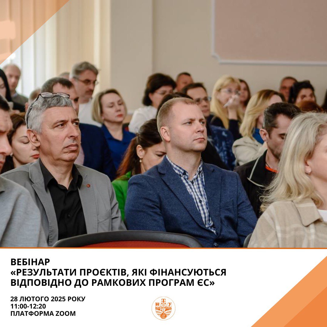 Запрошуємо Вас до участі в онлайн-вебінарі «Результати проєктів, які фінансуються відповідно до рамкових програм ЄС (European Research Council). Механізм пошуку та аналіз результатів», який відбудеться 28 лютого 2025 року з 11.00 до 12.20 (за Київським часом) на платформі ZOOM: (Підключення онлайн : https://us02web.zoom.us/j/83999659605?pwd=JNUMqB41Fo0KMFZDfxLE24MjUd6yjy.1, Meeting ID: 839 9965 9605 , Passcode: 890292 ) .