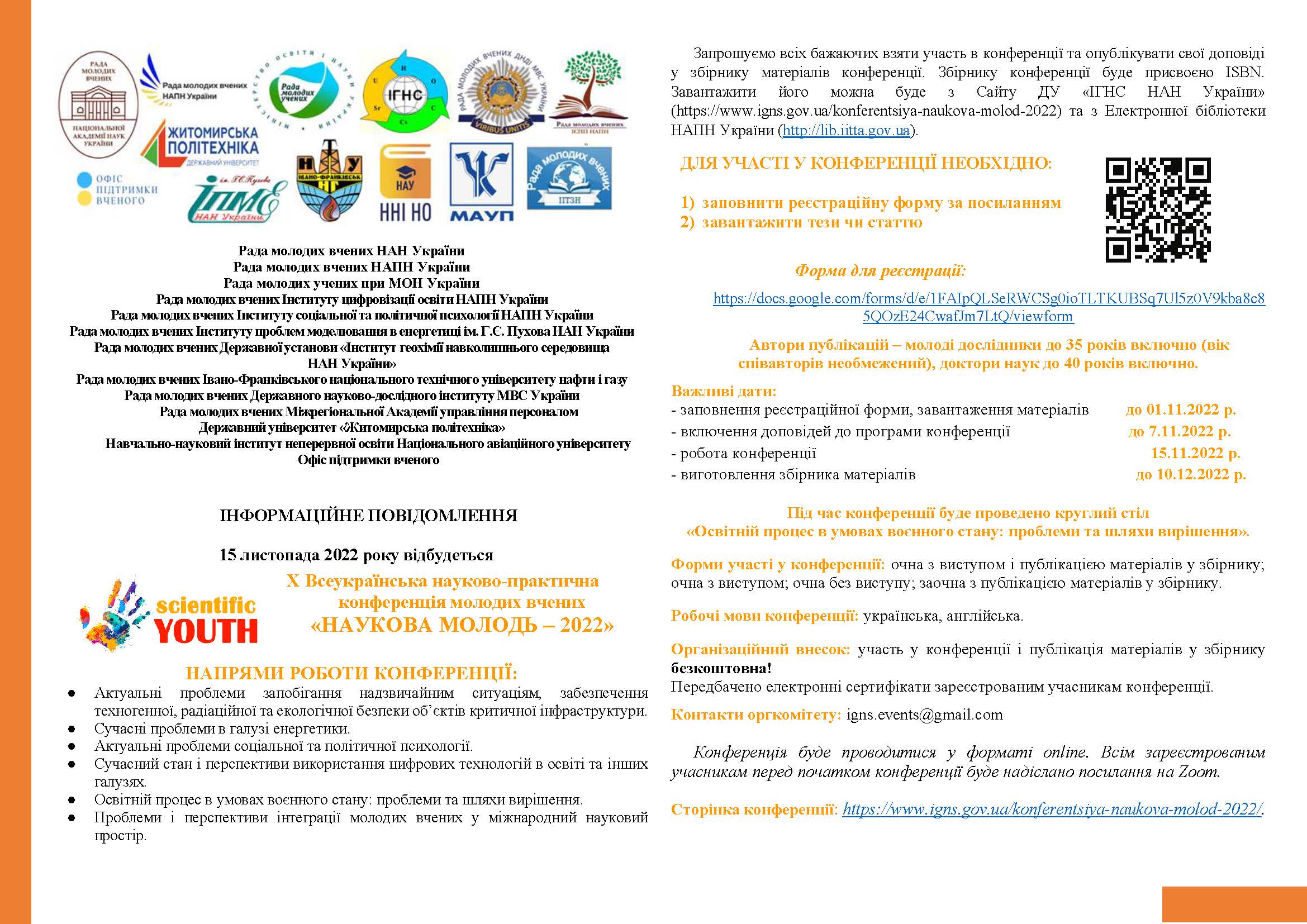 Сторінка конференції: https://www.igns.gov.ua/konferentsiya-naukova-molod-2022/.
