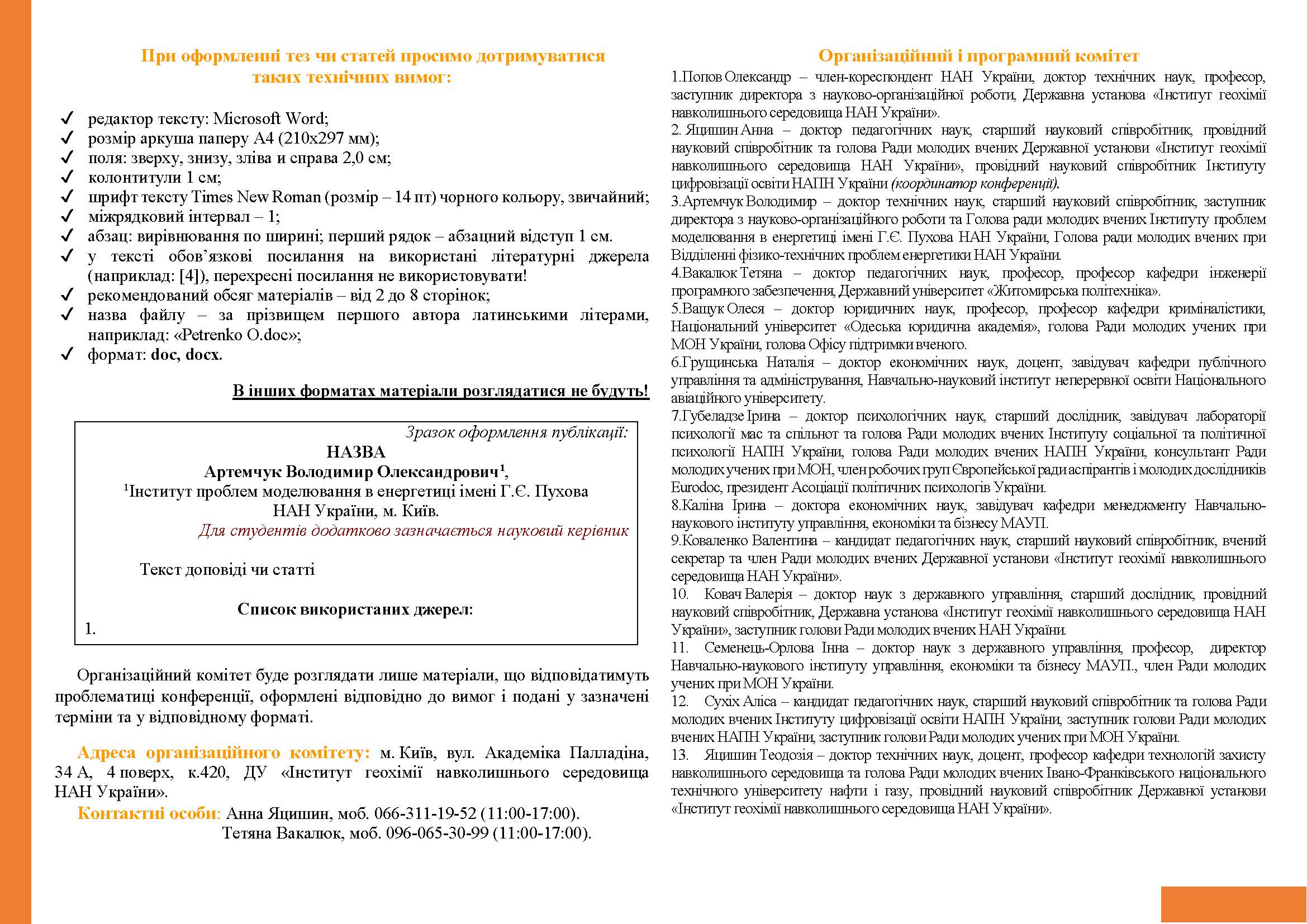 Організаційний внесок: участь у конференції і публікація матеріалів у збірнику безкоштовна!