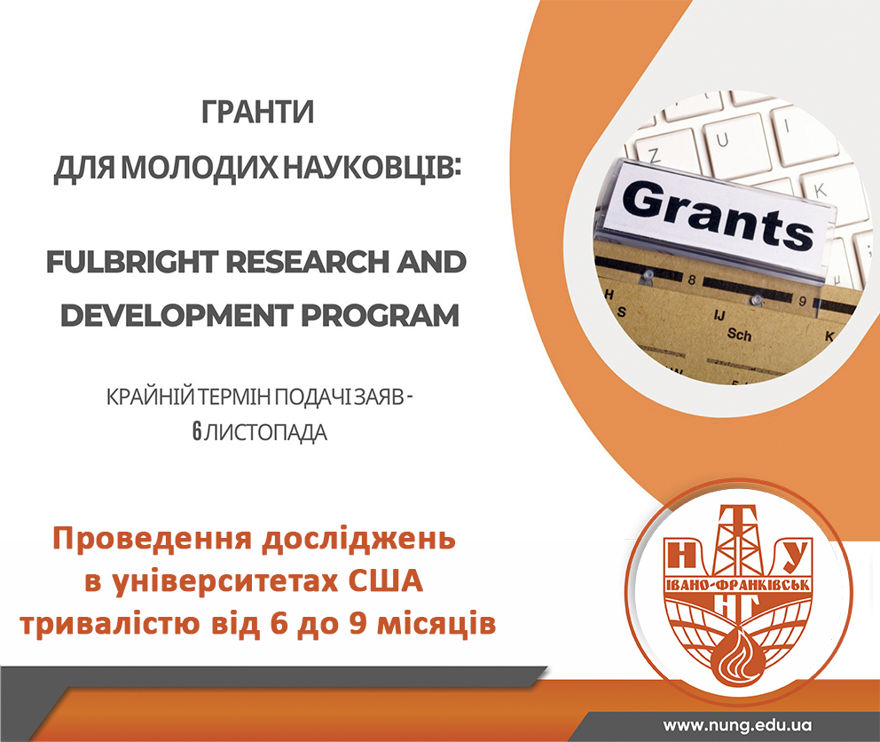 Розпочато прийом заявок для участі у черговому щорічному конкурсі на здобуття стипендій імені Фулбрайта для молодих викладачів та дослідників — FULBRIGHT RESEARCH AND DEVELOPMENT PROGRAM: Проведення досліджень в університетах США тривалістю від шести до дев’яти місяців.