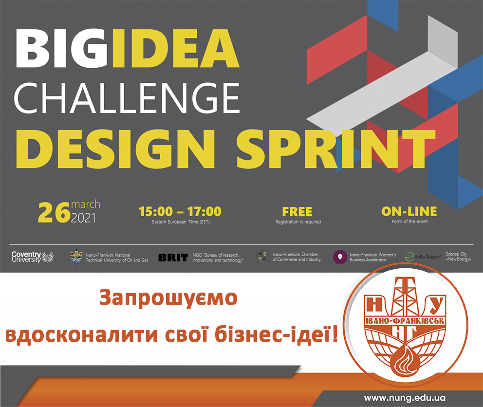 У рамках програми Creative Spark університет організує Big Idea Challenge Design Sprint* для розвитку Ваших ідей для конкурсу Big Idea Challenge 2021.