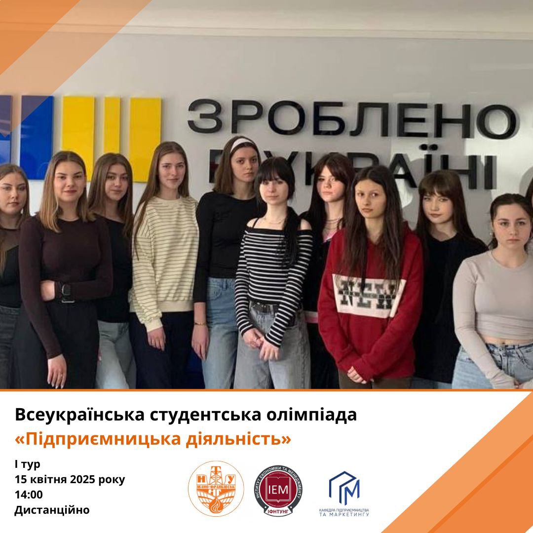 Запрошуємо здобувачів вищої освіти та студентів закладів фахової передвищої взяти участь у І турі Всеукраїнської студентської олімпіади з навчальної дисципліни «Підприємницька діяльність», яка буде проходити під егідою 10-ої РІЧНИЦІ КАФЕДРИ ПІДПРИЄМНИЦТВА ТА МАРКЕТИНГУ ІФНТУНГ.