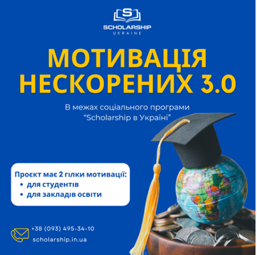 Державна наукова установа «Інститут модернізації змісту освіти» інформує, що в межах соціального проєкту «Scholarship в Україні» стартує конкурс «Мотивація нескорених 3.0».
